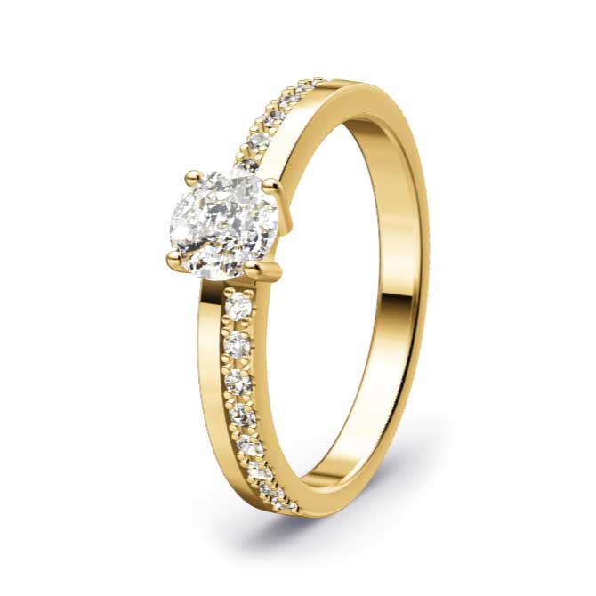 Typischerweise kommen bei Verlobungsringen, Eheringen und Diamantschmuck Brillanten zum Einsatz. Der Brillant ist der beliebteste Edelstein für Schmuck. Mit seiner hohen Lichtbrechung und seinem Glanz mit zahllosen inneren Lichtreflexionen lässt er die Herzen der Menschen höher schlagen.