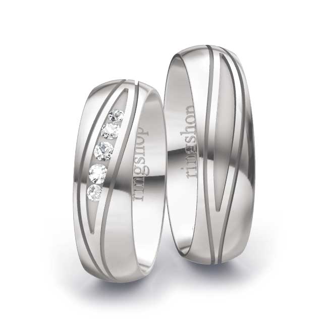 Palladium: Das mit Platin verwandte Metall Palladium erhält mit einem Feingehalt von 950/- eine besonders helle und strahlende Oberfläche. Mit einem Feingehalt von 500/- ist es deutlich dunkler wie etwa Graugold.