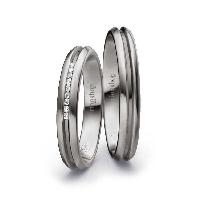 Palladium: Das mit Platin verwandte Metall Palladium erhält mit einem Feingehalt von 950/- eine besonders helle und strahlende Oberfläche. Mit einem Feingehalt von 500/- ist es deutlich dunkler wie etwa Graugold.