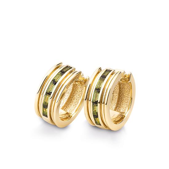 Gelbgold: Die „klassische“, elegante und zeitlose Goldfarbe mit Feingehalt 333/-, 375/-, 585/- und 750/- ist eine dem Feingold sehr ähnelnde gelbe Goldlegierung, die vorwiegend mit Silber und Kupfer legiert ist. Mit einem Feingehalt von 585/- (14 Karat) und 750/- (18 Karat) spricht man von „Echtschmuck“.