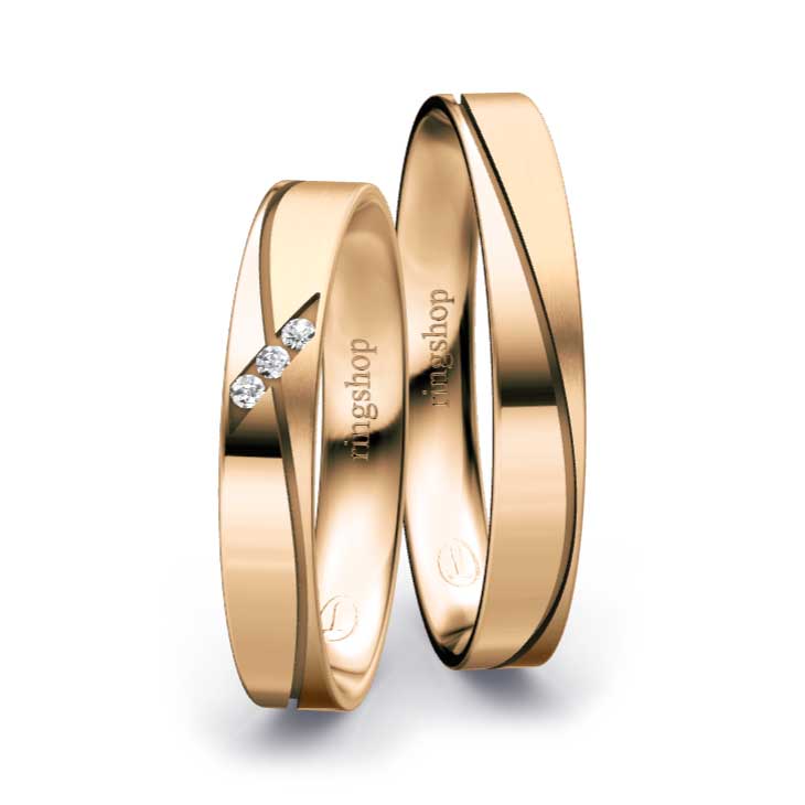 Rotgold: Es handelt sich um eine Legierung aus Feingold, Kupfer und Silber mit Goldanteilen zwischen 333/- und 750/-. Der etwas größere Kupferanteil sorgt für die namensgebende „rote“ Färbung und Härte des Materials. Der elegante und gleichermaßen zeitlose Farbton ist Kupfer ähnlich.
