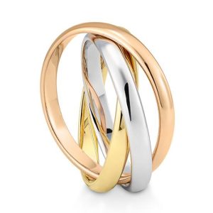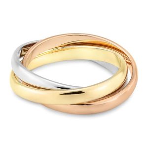 Rotgold: Es handelt sich um eine Legierung aus Feingold, Kupfer und Silber mit Goldanteilen zwischen 333/- und 750/-. Der etwas größere Kupferanteil sorgt für die namensgebende „rote“ Färbung und Härte des Materials. Der elegante und gleichermaßen zeitlose Farbton ist Kupfer ähnlich.