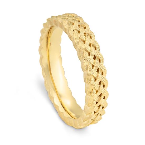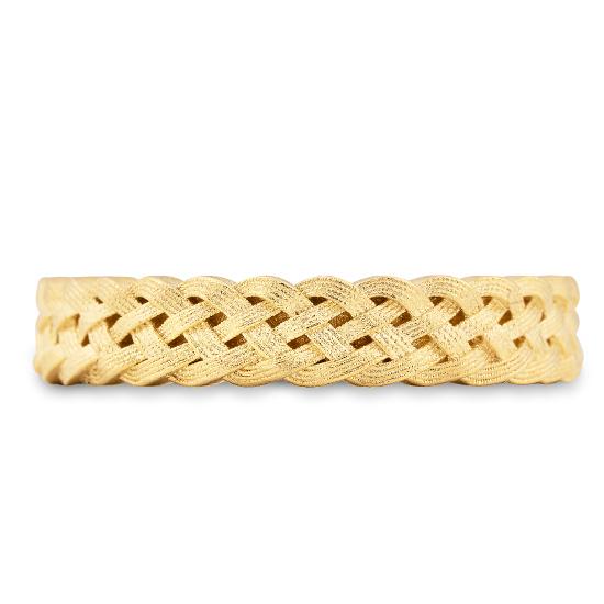 Gelbgold: Die „klassische“, elegante und zeitlose Goldfarbe mit Feingehalt 333/-, 375/-, 585/- und 750/- ist eine dem Feingold sehr ähnelnde gelbe Goldlegierung, die vorwiegend mit Silber und Kupfer legiert ist. Mit einem Feingehalt von 585/- (14 Karat) und 750/- (18 Karat) spricht man von „Echtschmuck“.