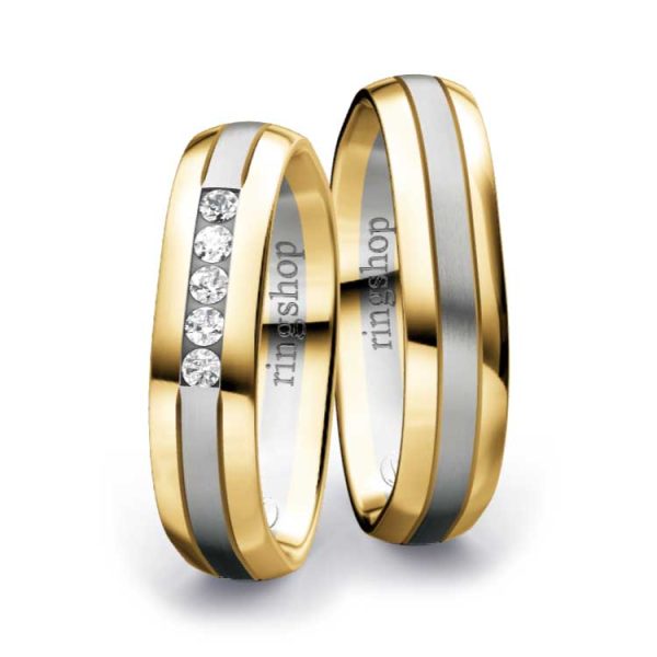 Gelbgold: Die „klassische“, elegante und zeitlose Goldfarbe mit Feingehalt 333/-, 375/-, 585/- und 750/- ist eine dem Feingold sehr ähnelnde gelbe Goldlegierung, die vorwiegend mit Silber und Kupfer legiert ist. Mit einem Feingehalt von 585/- (14 Karat) und 750/- (18 Karat) spricht man von „Echtschmuck“.