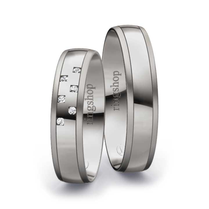 Palladium: Das mit Platin verwandte Metall Palladium erhält mit einem Feingehalt von 950/- eine besonders helle und strahlende Oberfläche. Mit einem Feingehalt von 500/- ist es deutlich dunkler wie etwa Graugold.