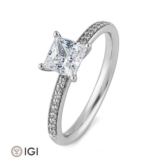 Die Diamanten in unseren Ringen sind in verschiedenen Schliffarten erhältlich: Brillant, Princess, Cushion, Oval, Emerald oder Pear. Alle Steine sind GIA- oder IGI-zertifiziert, konfliktfrei und stammen aus verantwortungsvollen Quellen. Die Reinheitsgrade reichen von VS (very small inclusions) bis IF (internally flawless), die Farbstufen von G bis D.