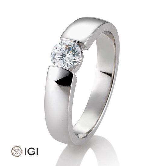 Silber: Seit Jahrhunderten sehr beliebte Materialien zur Herstellung von Schmuck sind Silberlegierungen. Silber überzeugt durch sein strahlend helles Erscheinungsbild und ist aufgrund des günstigeren Preises sehr gefragt – speziell bei Verlobungsringen.